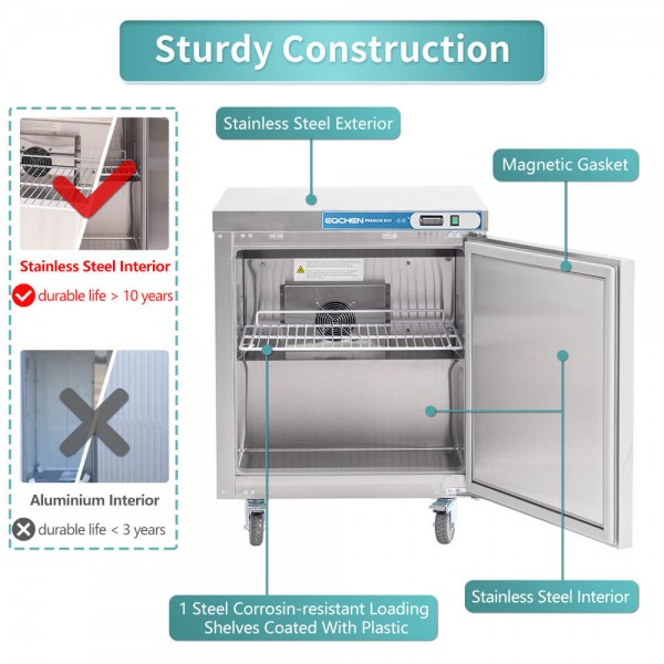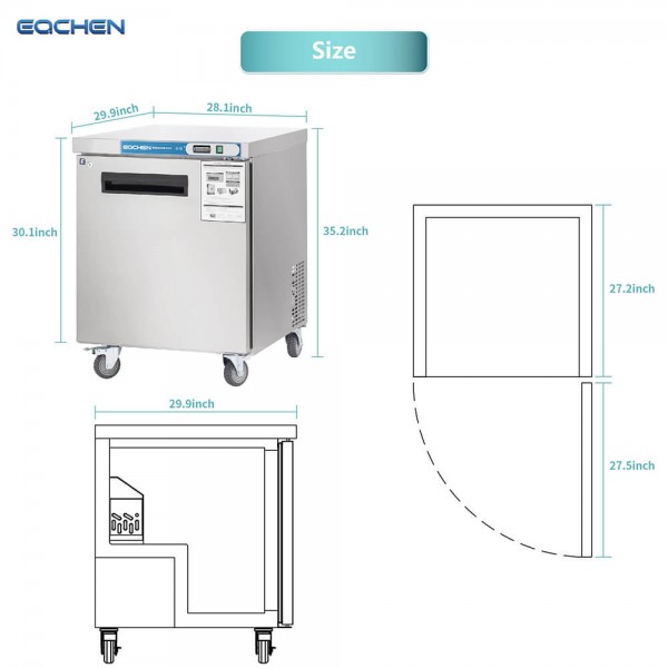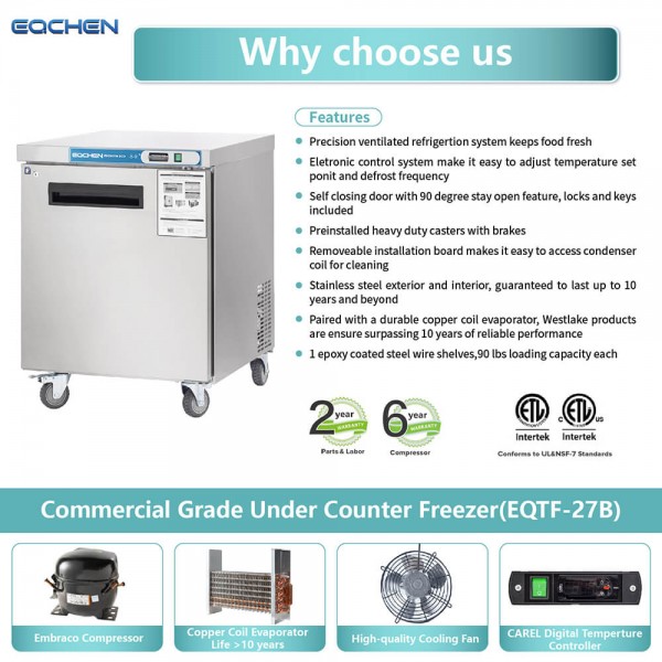 Eqchen - EQTF-27B, Commercial 28" Undercounter Worktop Freezer 7.4 cu.ft NSF