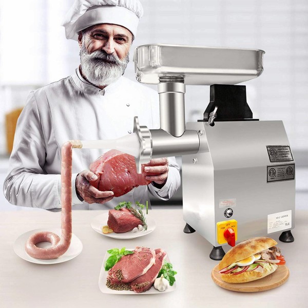 #12 1HP EQCHEN Commercial Electric Meat Grinder-Heavy Duty Commercial 1HP Electric Meat Grinder - PREPPAL 735W Stainless Steel Sausage Stuffer For Restaurant/Deli/ Home (250lbs Per Hour) (KPG-12)