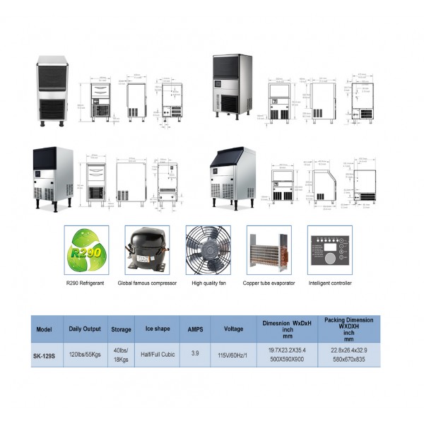 Reliable refrigeration system ensure high speed and stable refrigerating process, reasonable ice making method ensure high quality and smooth ice output. The cube ice depth can be adjusted from 19mm to 25mm.