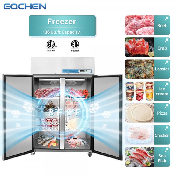 2 Door Commercial Freezer, EQCHEN EQ-48F 48" W Reach in Upright Freezer 36 Cu.ft for Restaurant, Bar, Shop, et