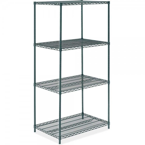 Green Epoxy Coating Health departments expect coated shelving in moist environments like walk-in coolers and freezers. These shelves come with a strong corrosion resistant green epoxy coating designed for both dry or moist environments.
