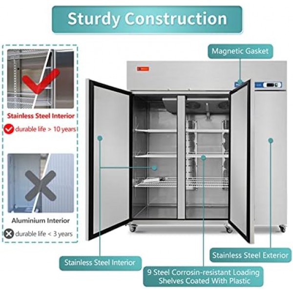 - Professional design: Reach in 3 solid door designs, 90 lbs loading capacity per shelf, 54 cubic feet storage room. The unit comes with 4" casters, It's convenient for you to move it when you need it
