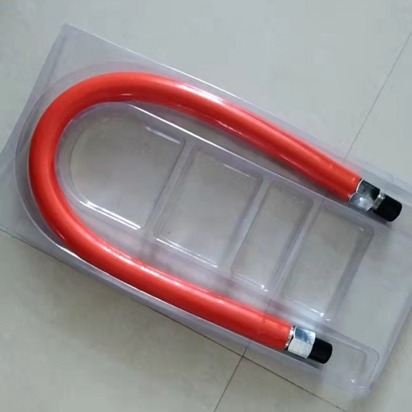 - Orange PVC coating prevents grease buildup; fittings allow 360 degree rotation at both ends