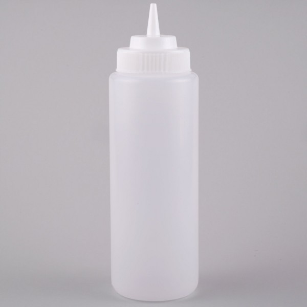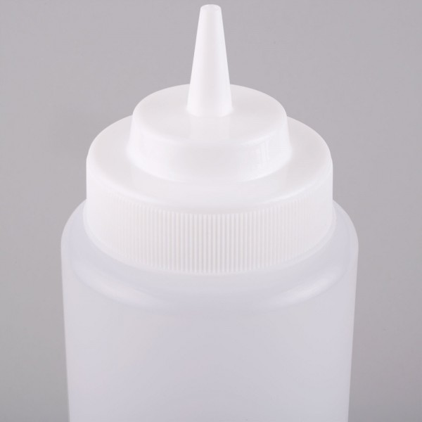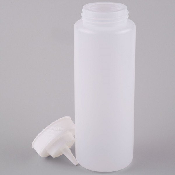 This bottle's versatile, simple design is ideal for both back-of-house and front-of-house applications. Serve a variety of condiments including ketchup, barbecue sauce, buffalo sauce, or even olive oil and salad dressings. Whether you're using it in your kitchen to complete your culinary creations or placing it in a self-serve area for guests to use, this Choice wide mouth squeeze bottle will make adding condiments to items a breeze. FSQUB-WM-32-6