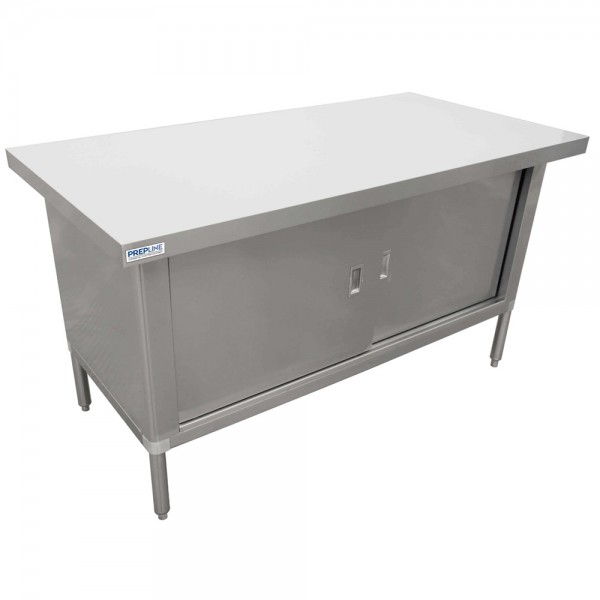 Prepline 24"D x 60"L 304 Stainless Steel Enclosed Base Worktable with Sliding Doors