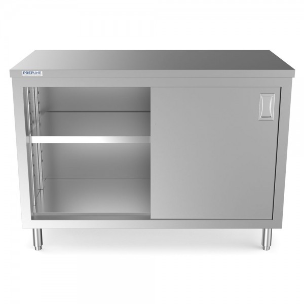 WowPrep PC-2448 24"D x 48"L Stainless Steel Enclosed Base Work Table with Sliding Doors and Adjustable Shelf