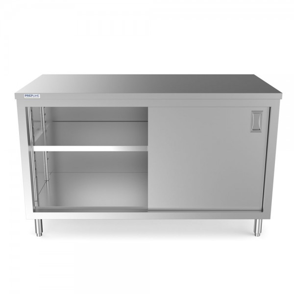 WowPrep PC-3060 30"D x 60"L Stainless Steel Enclosed Base Work Table with Sliding Doors and Adjustable Shelf