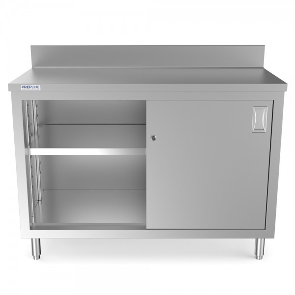 WowPrep PCB-1848 18"D x 48"L Stainless Steel Enclosed Base Work Table with Sliding Doors and 5" Backsplash