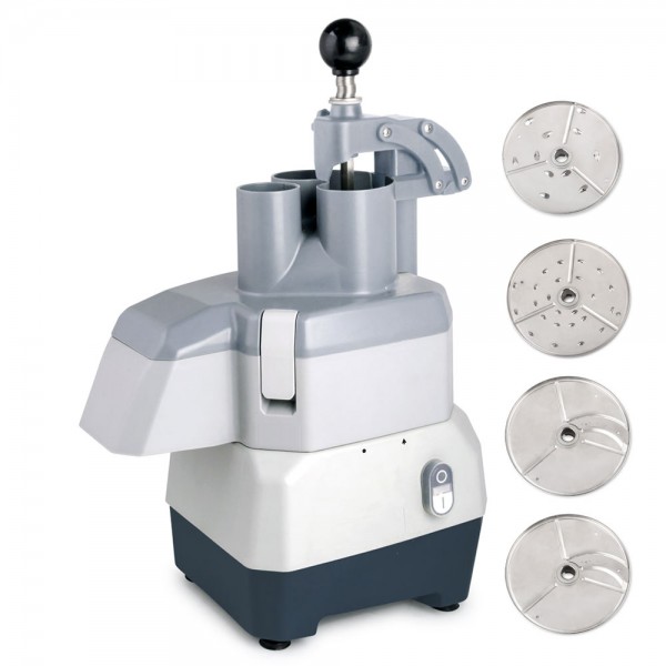 Description Increasing efficiency and profitability with this Prepline vegetable cutter, continuous feed food processor with 4 discs. Thanks to its powerful 1 hp motor, it is built for high production use, can easily shred, slice and grate your ingredient, greatly shortening prep time and reducing tasks that used to take a significant amount of time to just a mere minutes or even seconds. Standard 115V plug makes set up easy. Just plug it in and turn it on!Product Features