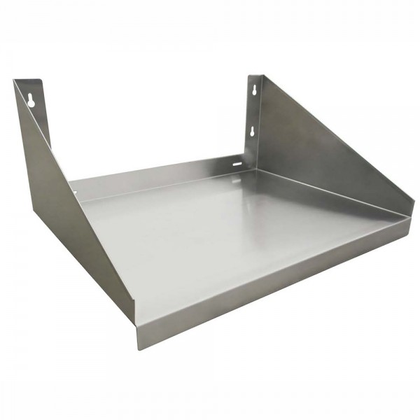 Description Steadily holding your commercial microwave with Prepline PWMS-1824 24"L x 18"D stainless steel wall-mounted microwave shelf. Constructed of 18-gauge stainless steel, it is engineered to withstand the wear and tear commercial environments. Wall-mounted design keeps the microwave within easy reach while provides valuable counter room for other equipment and supplies. What's more, it can hold up to 185 lb. weight capacity. It's more than a microwave shelf, you can also use it for holding ingredients, cleaning supplies or other small kitchen appliances. Get this Prepline shelf to free up valuable counter space and keep kitchen utensils at your fingertip.