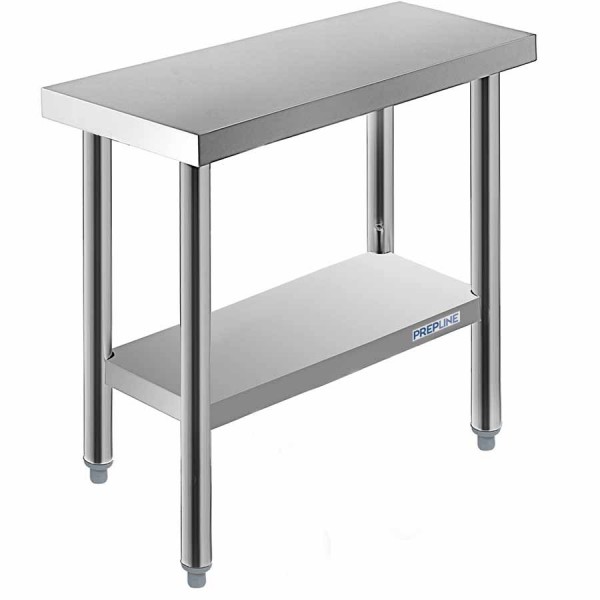 The Prepline PWTG is our most popular line of stainless steel worktable. This prep table is 14"D (front to back) x 24"L (left to right) with an adjustable height of 35 to 36" With the best quality to price ratio in the industry these commercial worktables allow you to prepare foods, operate countertop slicers or mixers, and store heavy items with easy. The Prepline PWTG series is more than strong enough for the most demanding commercial uses.Prepline PWTG series stainless steel worktables shipped boxed and assemble in minutes with included screws and allen wrench. These heavy duty worktables feature high grade stainless steel work surface with an adjustable galvanized steel undershelf and extra durable leg and socket design to prevent lateral movement. The adjustable feet can raise or lower the unit by one inch and also make it easy to level on uneven surfaces.