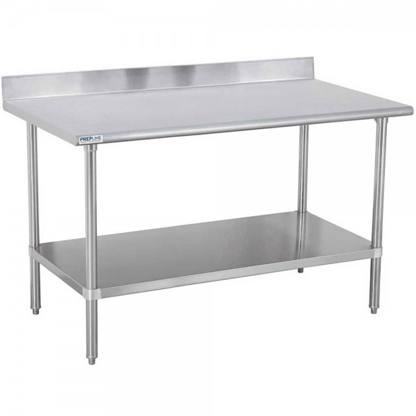 The Prepline PWTG-BS is our most popular line of stainless steel worktable with backsplash. This prep table is 24"D (front to back) x 60"L (left to right) with an adjustable height of 35 to 36" With the best quality to price ratio in the industry these commercial worktables allow you to prepare foods, operate countertop slicers or mixers, and store heavy items with easy. The Prepline PWTG-BS series is more than strong enough for the most demanding commercial uses. Prepline PWTG-BS series stainless steel worktables shipped boxed and assemble in minutes with included screws and allen wrench. These heavy duty worktables feature high grade stainless steel work surface with an adjustable galvanized steel undershelf and extra durable leg and socket design to prevent lateral movement. The adjustable feet can raise or lower the unit by one inch and also make it easy to level on uneven surfaces.