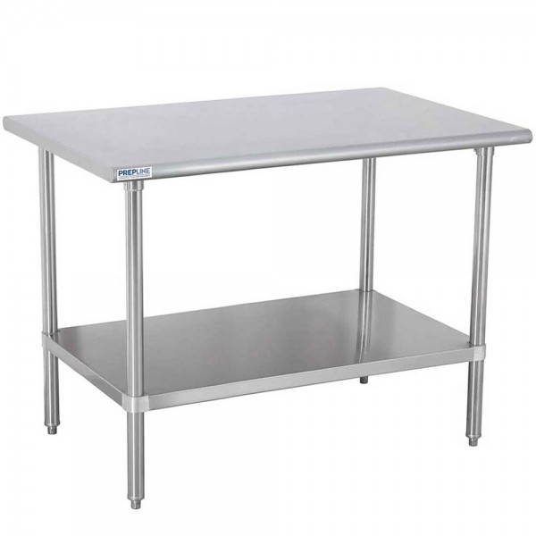The Prepline PWTG is our most popular line of stainless steel worktable. This prep table is 36"D (front to back) x 48"L (left to right) with an adjustable height of 35 to 36" With the best quality to price ratio in the industry these commercial worktables allow you to prepare foods, operate countertop slicers or mixers, and store heavy items with easy. The Prepline PWTG series is more than strong enough for the most demanding commercial uses.Prepline PWTG series stainless steel worktables shipped boxed and assemble in minutes with included screws and allen wrench. These heavy duty worktables feature high grade stainless steel work surface with an adjustable galvanized steel undershelf and extra durable leg and socket design to prevent lateral movement. The adjustable feet can raise or lower the unit by one inch and also make it easy to level on uneven surfaces.