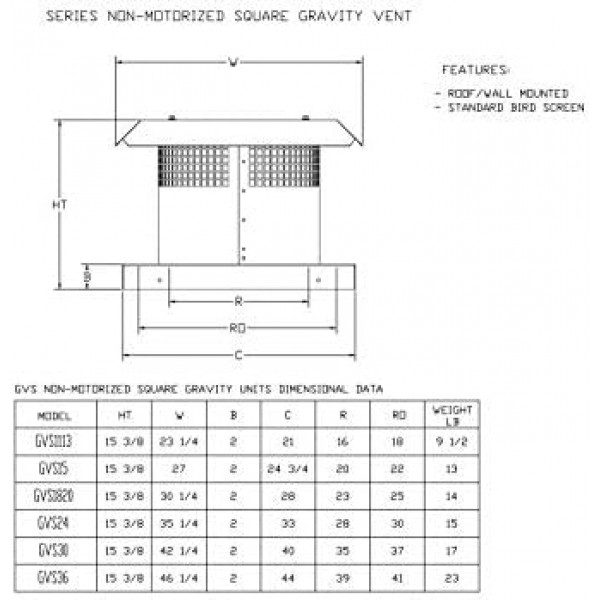 Architectural Square Top Non-Motorized Gravity Vent (GVS36)