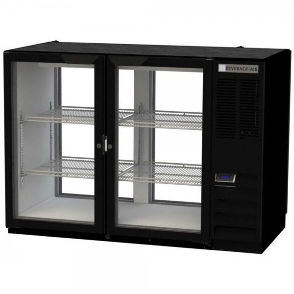 Beverage Air BB48HC-1-FG-PT-B 48" Pass-Thru Black Two Glass Door Food Rated Back Bar Refrigerator