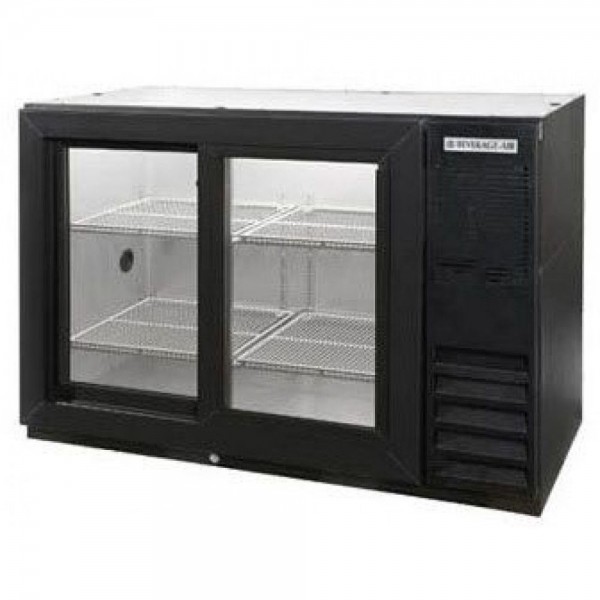 Beverage-Air BB48HC-1-GS-PT-B-27 48" Pass-Thru Black Two Sliding Glass Door Back Bar Refrigerator with Stainless Steel Top