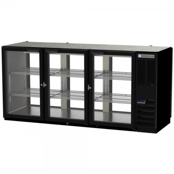 Beverage Air BB72HC-1-F-G-PT-S-27 72" Pass-Thru Stainless Steel Three Glass Door Food Rated Back Bar Refrigerator with 2" Stainless Steel Top