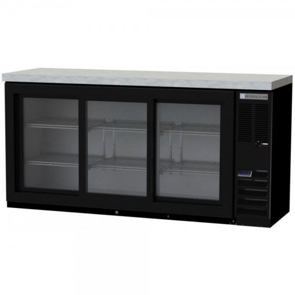 Beverage-Air BB72HC-1-F-GS-B-27 72" Black Three Sliding Glass Door Food Rated Back Bar Refrigerator with 2" Stainless Steel Top