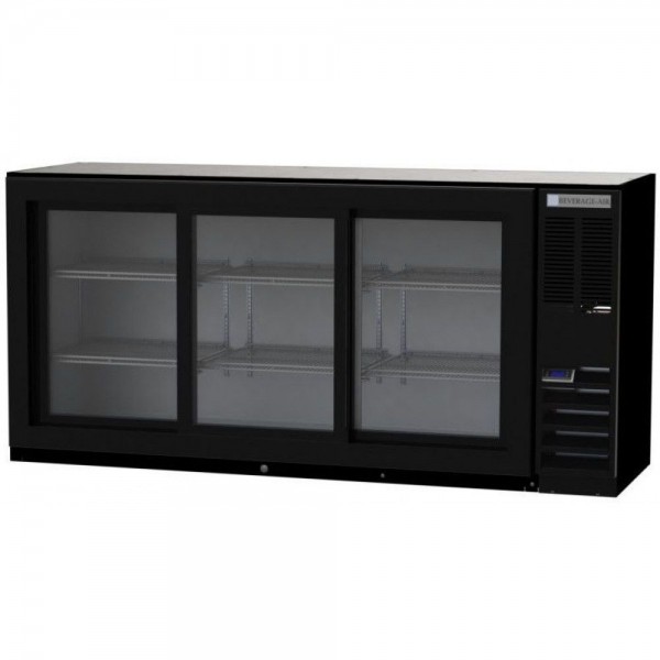 Beverage Air BB72HC-1-F-GS-B 72" Black Three Sliding Glass Door Food Rated Back Bar Refrigerator