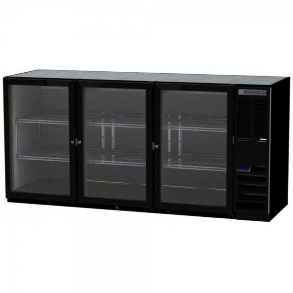 Beverage Air BB72HC-1-FG-B 72" Black Three Glass Door Food Rated Back Bar Refrigerator