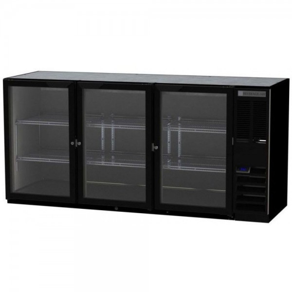 Beverage-Air BB72HC-1-G-B-27 72" Black Three Glass Door Back Bar Refrigerator with 2" Stainless Steel Top