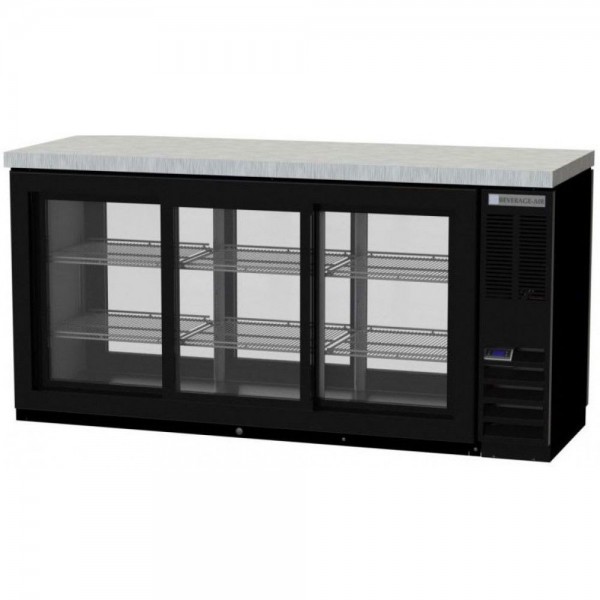 Beverage-Air BB72HC-1-GS-PT-S-27 72" Pass-Thru Stainless Steel Three Sliding Glass Door Back Bar Refrigerator with 2" Stainless Steel Top
