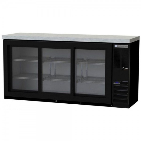 Beverage-Air BB72HC-1-GS-S-27 72" Stainless Steel Three Sliding Glass Door Back Bar Refrigerator with 2" Stainless Steel Top