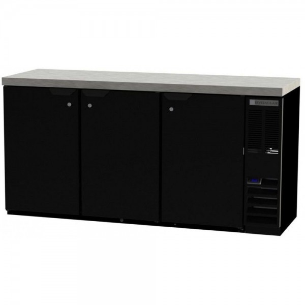 Beverage-Air BB72Y-1-B-27 72" Black Three Solid Door Back Bar Refrigerator with 2" Stainless Steel Top