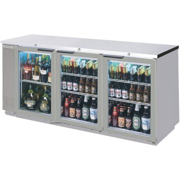Beverage Air BB78HC-1-FG-S 72" Stainless Steel Three Glass Door Food Rated Back Bar Refrigerator