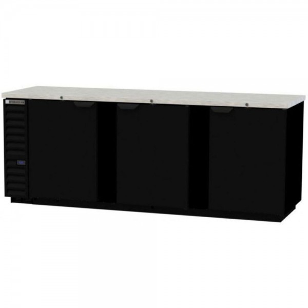 Beverage-Air BB94HC-1-F-B 94" Black Three Solid Door Food Rated Back Bar Refrigerator
