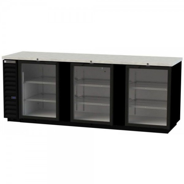 Beverage Air BB94HC-1-FG-S 95" Stainless Steel Three Glass Door Food Rated Back Bar Refrigerator
