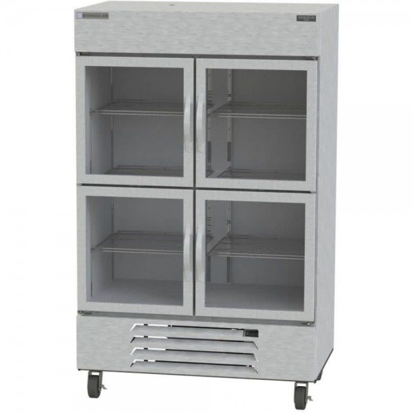 Beverage-Air HBR49HC-1-HG 2 Section Glass Half Door Bottom-Mounted Reach-In Refrigerator with LED Lighting - 49 Cu. Ft.