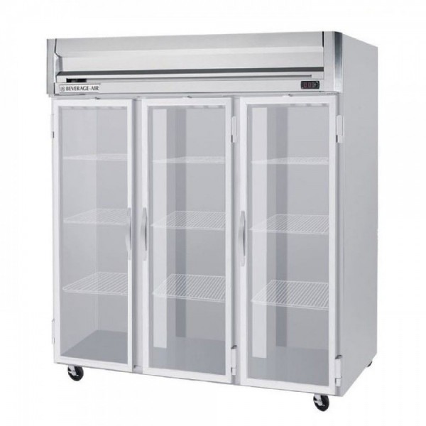 Beverage-Air HFP3HC-1HG 3 Section Glass Half Door Reach-In Freezer - 74 Cu. Ft.