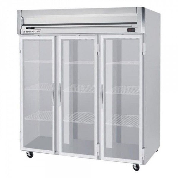 Beverage-Air HFS3HC-1G 3 Section Glass Door Reach-In Freezer - 74 Cu. Ft., Stainless Steel Front, Gray Exterior, Stainless Steel Interior