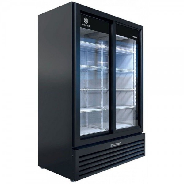 Beverage-Air MT53-1-SDB 54" Marketeer Series Black Refrigerated Sliding Glass Door Merchandiser with LED Lighting
