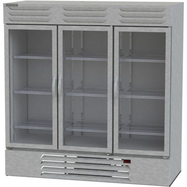 Beverage-Air RB72HC-1G 75" Vista Series Three Section Glass Door Reach-In Refrigerator - 72 Cu. Ft.