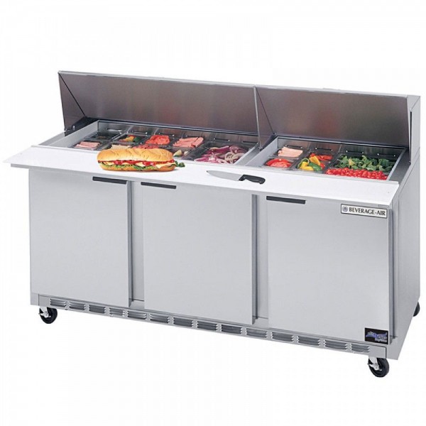 Beverage-Air SPE72HC-30M Elite Series 72" 3 Door Mega Top Refrigerated Sandwich Prep Table