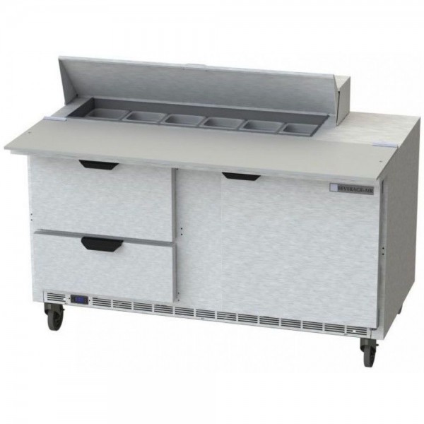 Beverage-Air SPED60HC-12C-2 60" 1 Door 2 Drawer Cutting Top Refrigerated Sandwich Prep Table with 17" Wide Cutting Board