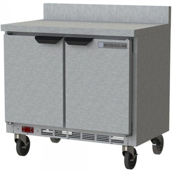 Beverage-Air WTR34HC-FIP 34" Shallow Depth Two Solid Doors Worktop Refrigerator with Foamed-In Place Backsplash - 4 Cu. Ft.