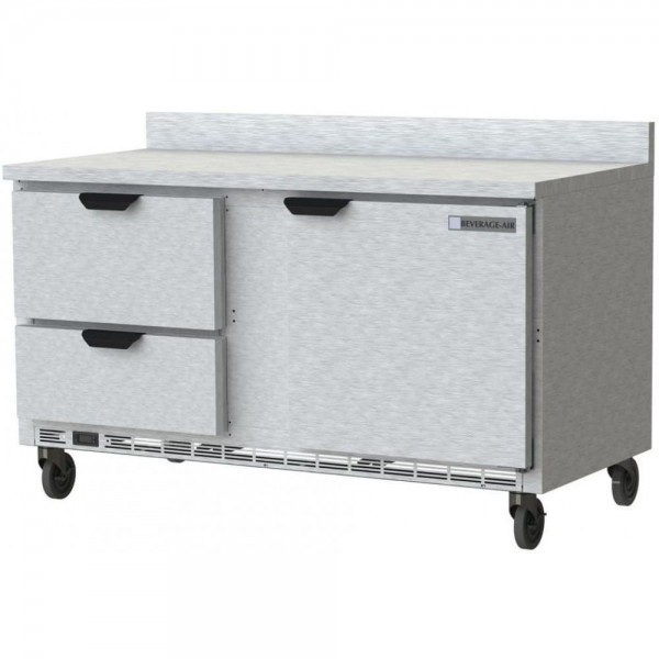 Beverage Air WTRD60AHC-2-FIP 60" Worktop Refrigerator with 1 Door, 2 Drawers and Foamed-In-Place Backsplash - 15 Cu. Ft.