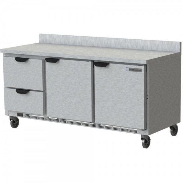 Beverage Air WTRD72AHC-2-FIP 72" Worktop Refrigerator with 2 Doors, 2 Drawers & Foamed-In Place Backsplash - 18 Cu. Ft.