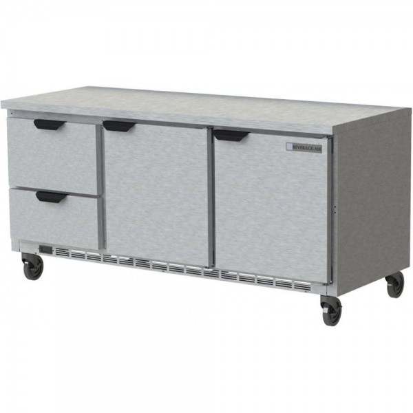 Beverage Air WTRD72AHC-2-FLT 72" Flat Worktop Refrigerator with 2 Doors & 2 Drawers - 18 Cu. Ft.