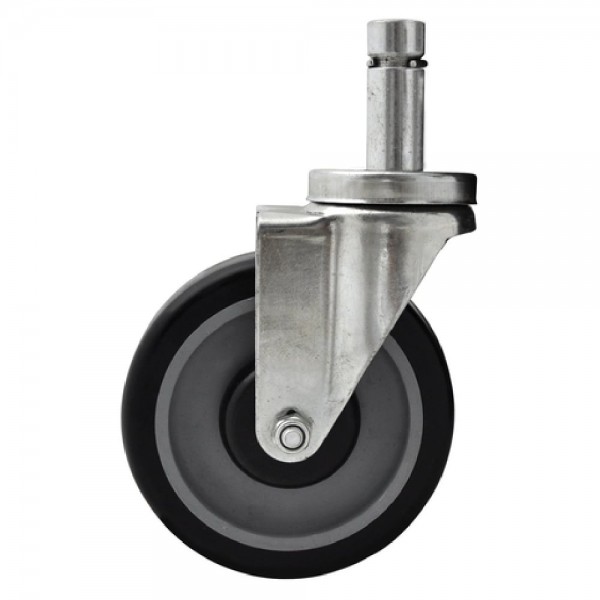 BK Resources, 5SBR-1ST-PLY, Caster, 5" diameter, pop-in stem, grip ring, without brake, medium duty, non-marking polyurethane tread, 300 lb. capacity, resistant to acids & caustics, fits 1" OD tubing, 1/2" king pin, double ball bearing, operational temp range -45° to 180° F, zinc plated, NSF