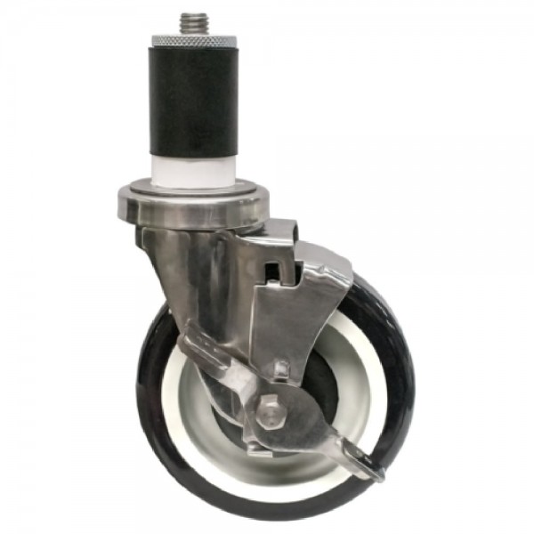 BK Resources, 5SS-RA-PLY-TLB, Caster, 1-1/2" expanding stem, 5" polyurethane wheel, top lock brake, 300 lb. capacity, resistant to acids & caustics, operational temp range -45° to 180° F, NSF