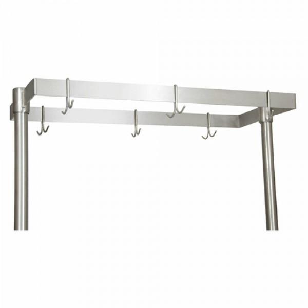 BK Resources, APQ-48, Pot Rack, table mount, 48"W x 50"H, 360 degree design, adjustable, extends 8" out from uprights on both sides, stainless steel construction, includes (16) stainless steel double-prong pot hooks & self-tapping screws