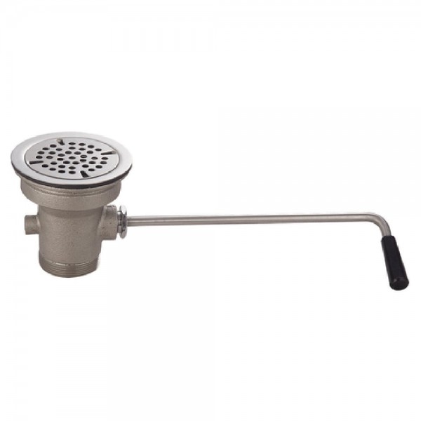 BK Resources, BK-LWR-1, Twist Lever Drain, fits 3-1/2" opening, 2" male & 1-1/2" female NPT drain outlet, brass construction with stainless steel strainer