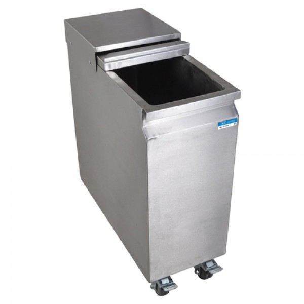 BK Resources, BK-MIB-2411, Mobile Ice Bin, with sliding lid, 11"W x 24"D x 29"H, stainless steel, 53lb. capacity, removable bottom tray, drain valve in rear of unit, 3" casters with brake