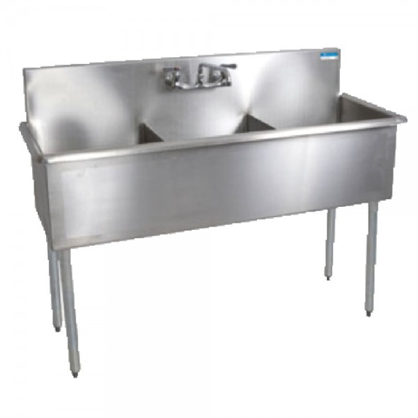 BK Resources BK8BS-3-1221-12 Budget Sink Three Compartment 39"W X 24-1/2"D X 41"H Overall Size