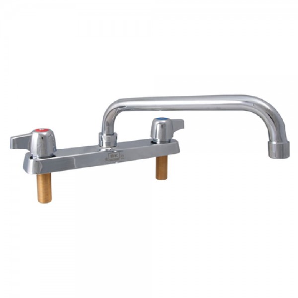 BK Resources, BK8D-12-G, WorkForce™ Standard Duty Faucet, deck mount, 8" OC, 12" swing spout, double O-ring spout seal, 1/4 turn ceramic cartridges, polished nickel chrome finish, lead free, NSF, cCSAus