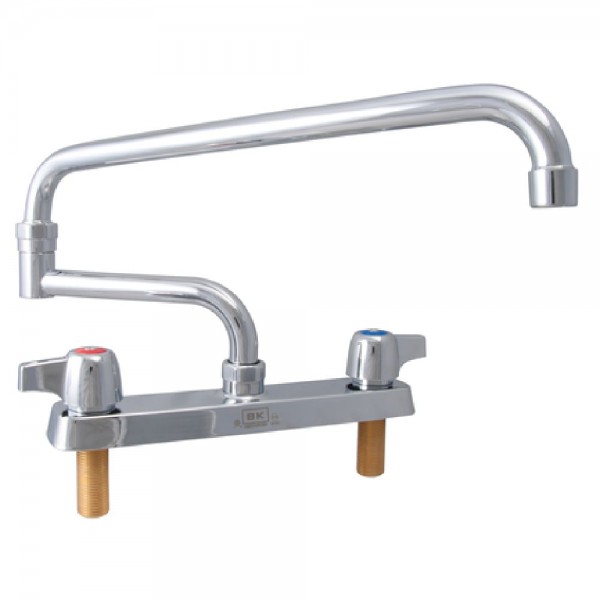 BK Resources, BK8D-18-G, WorkForce™ Standard Duty Faucet, deck mount, 8" OC, 18" double-jointed swing spout, double O-ring spout seal, 1/4 turn ceramic cartridges, polished nickel chrome finish, lead free, NSF, cCSAus